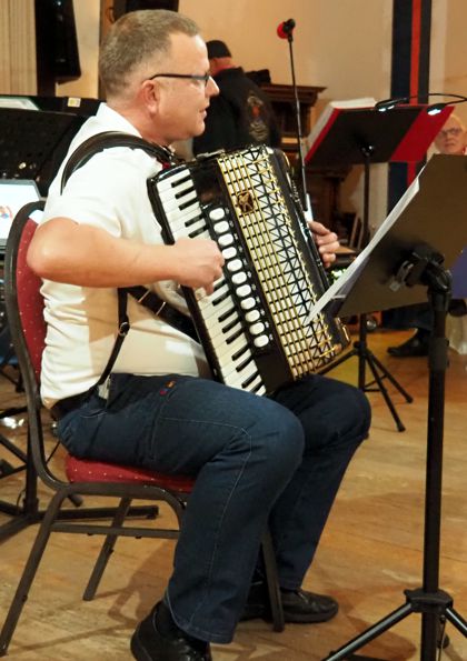 | Am Akkordeon begleitet Konzertmeister Karsten Kramm... |